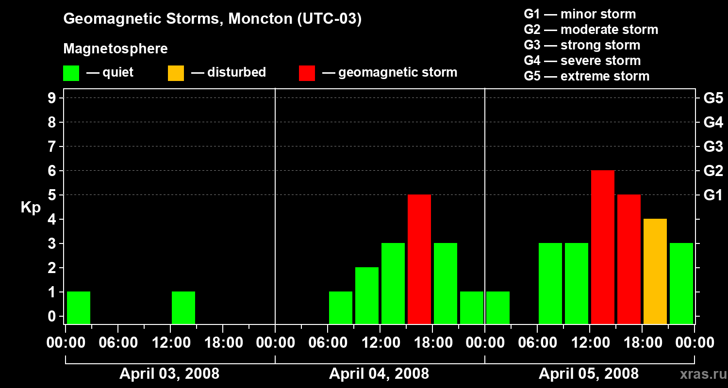 Geomagnetic storms in Moncton — Apr 05, 2008