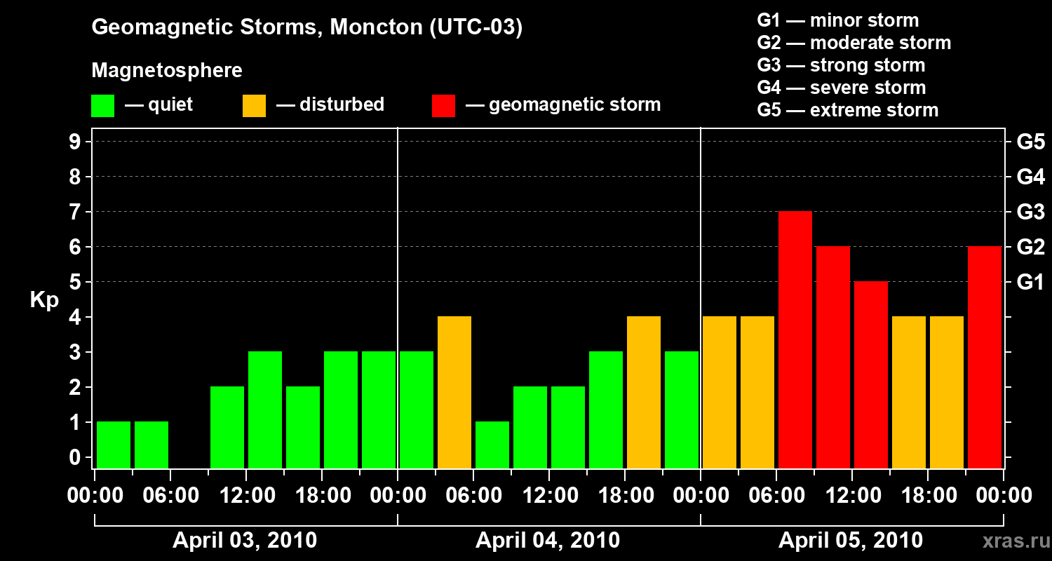 Geomagnetic storms in Moncton — Apr 05, 2010