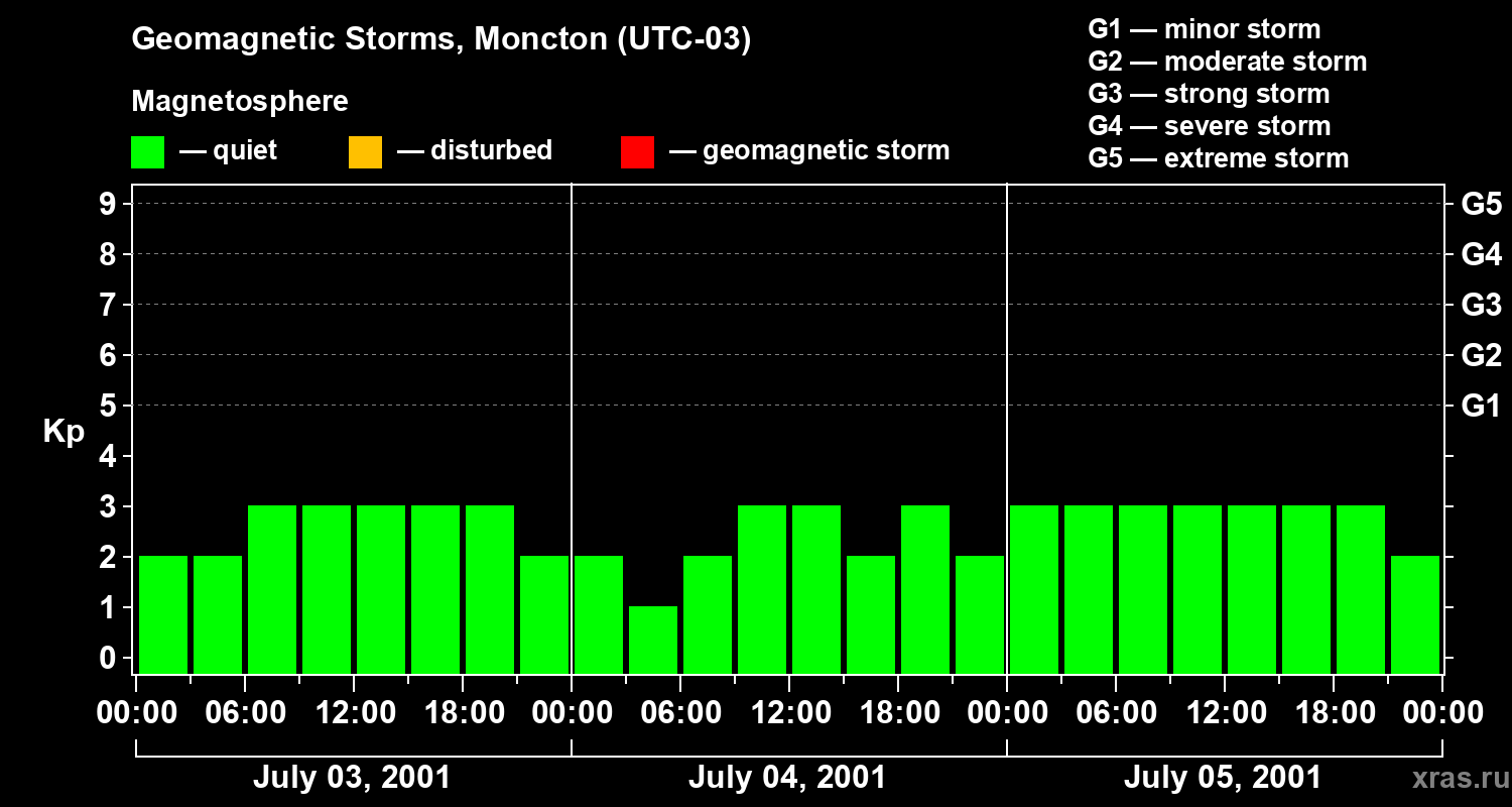 Geomagnetic storms in Moncton — Jul 05, 2001