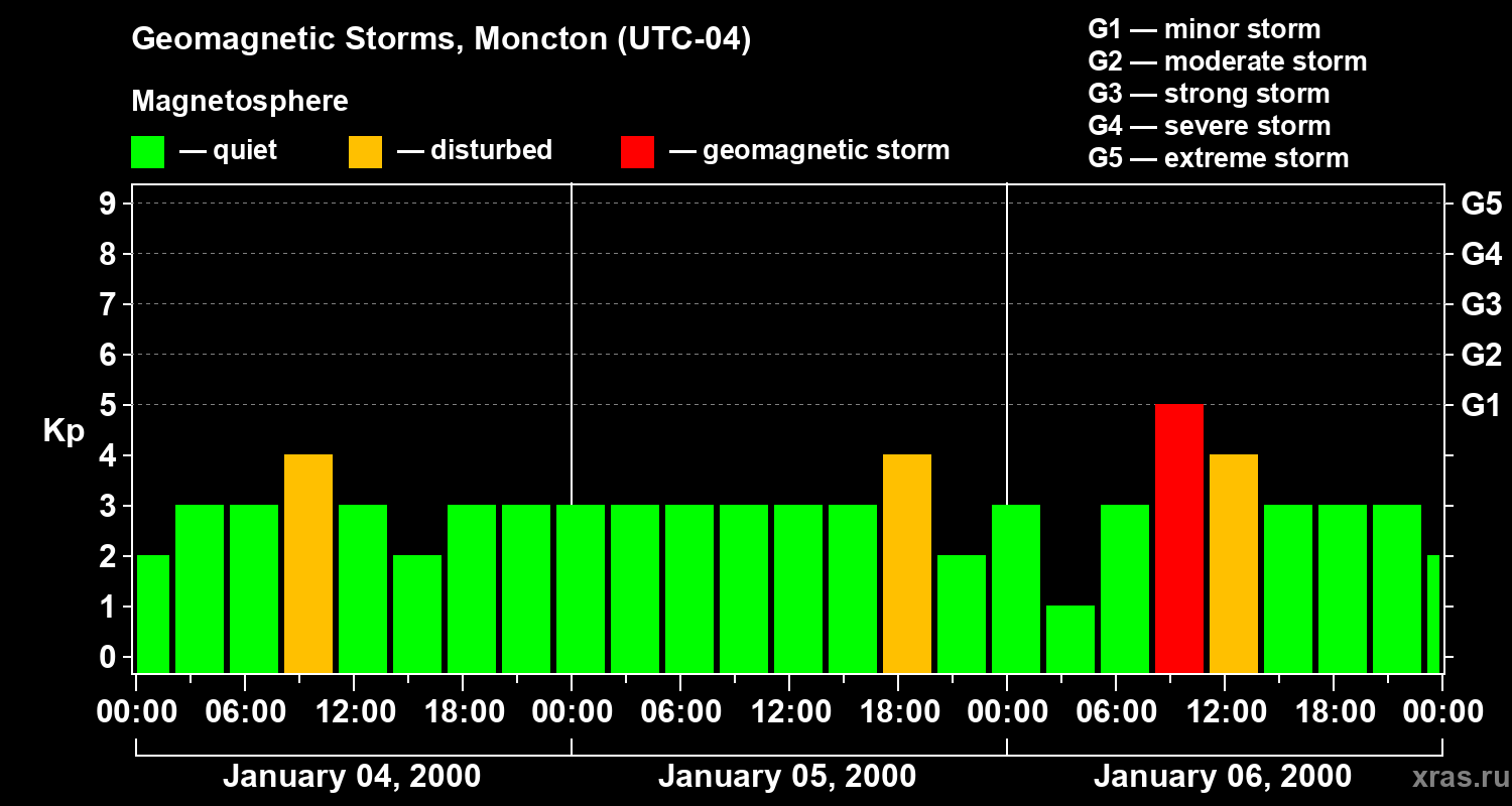 Geomagnetic storms in Moncton — Jan 06, 2000