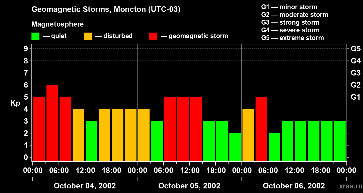 Geomagnetic storms in Moncton — Oct 06, 2002