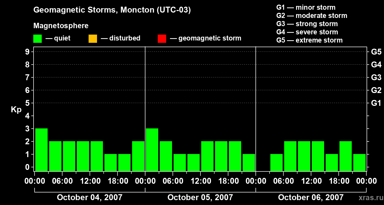 Geomagnetic storms in Moncton on Oct 06, 2007