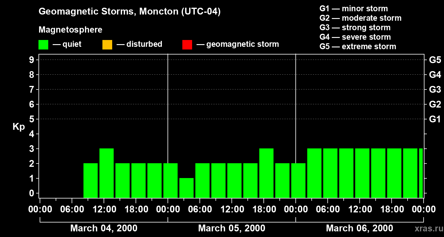 Geomagnetic storms in Moncton — Mar 06, 2000