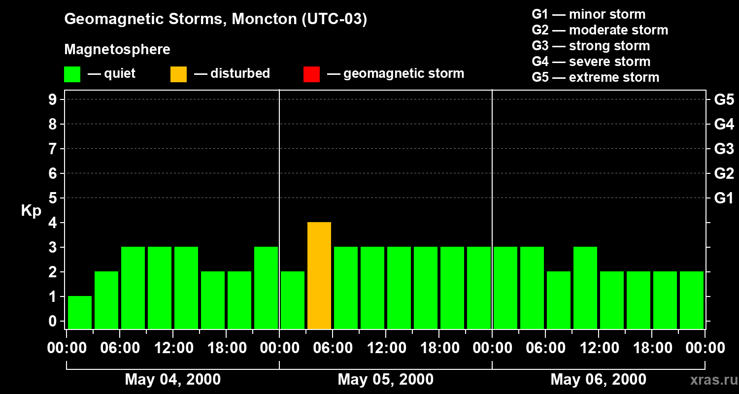 the Earth's magnetosphere was quiet (Kp = 3.00)