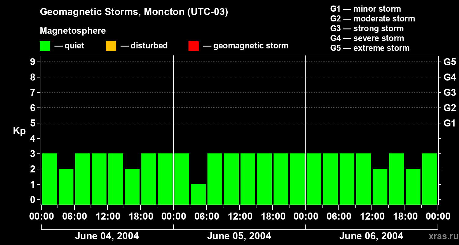 Geomagnetic storms in Moncton on Jun 06, 2004