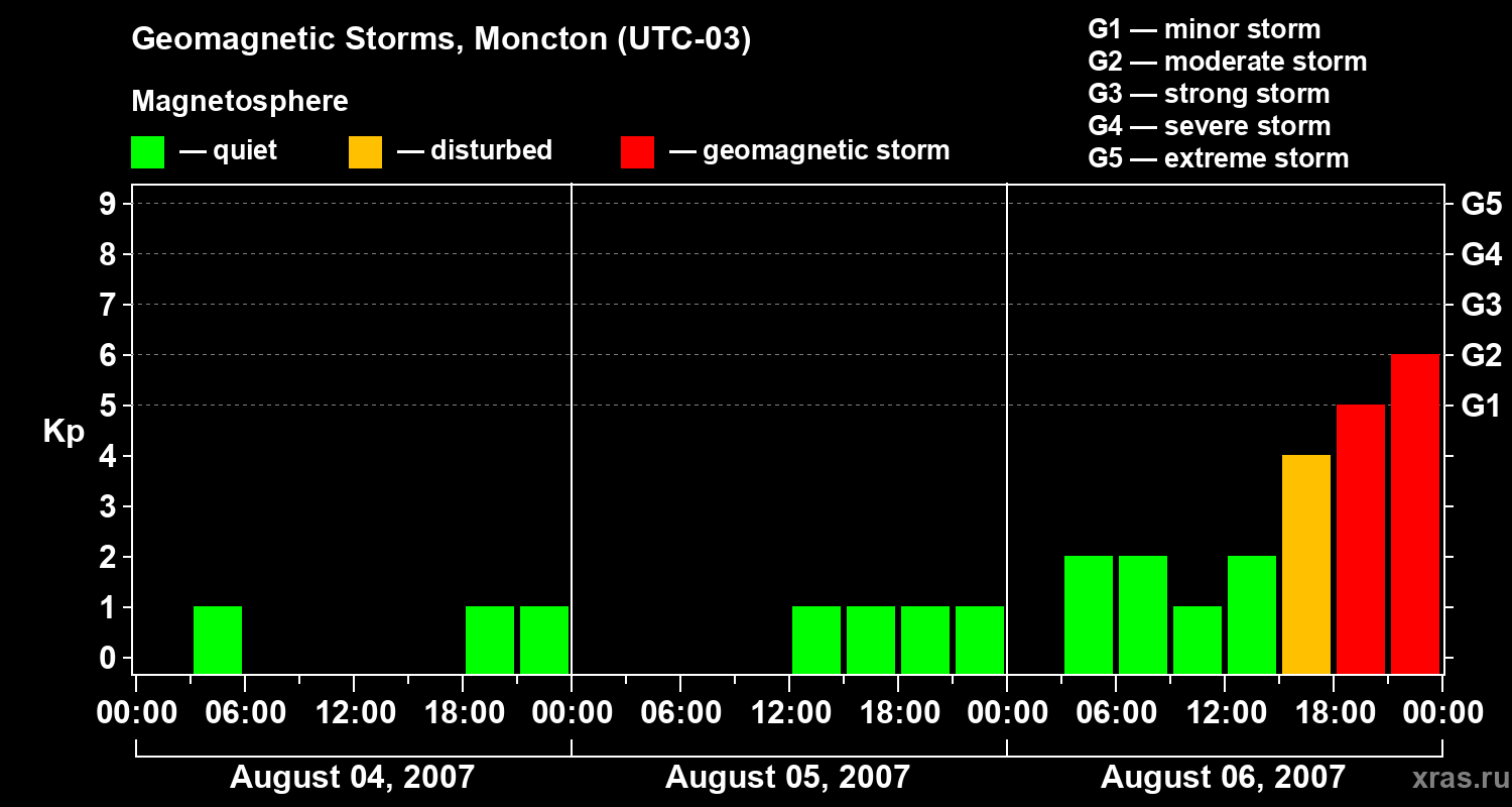 Geomagnetic storms in Moncton — Aug 06, 2007