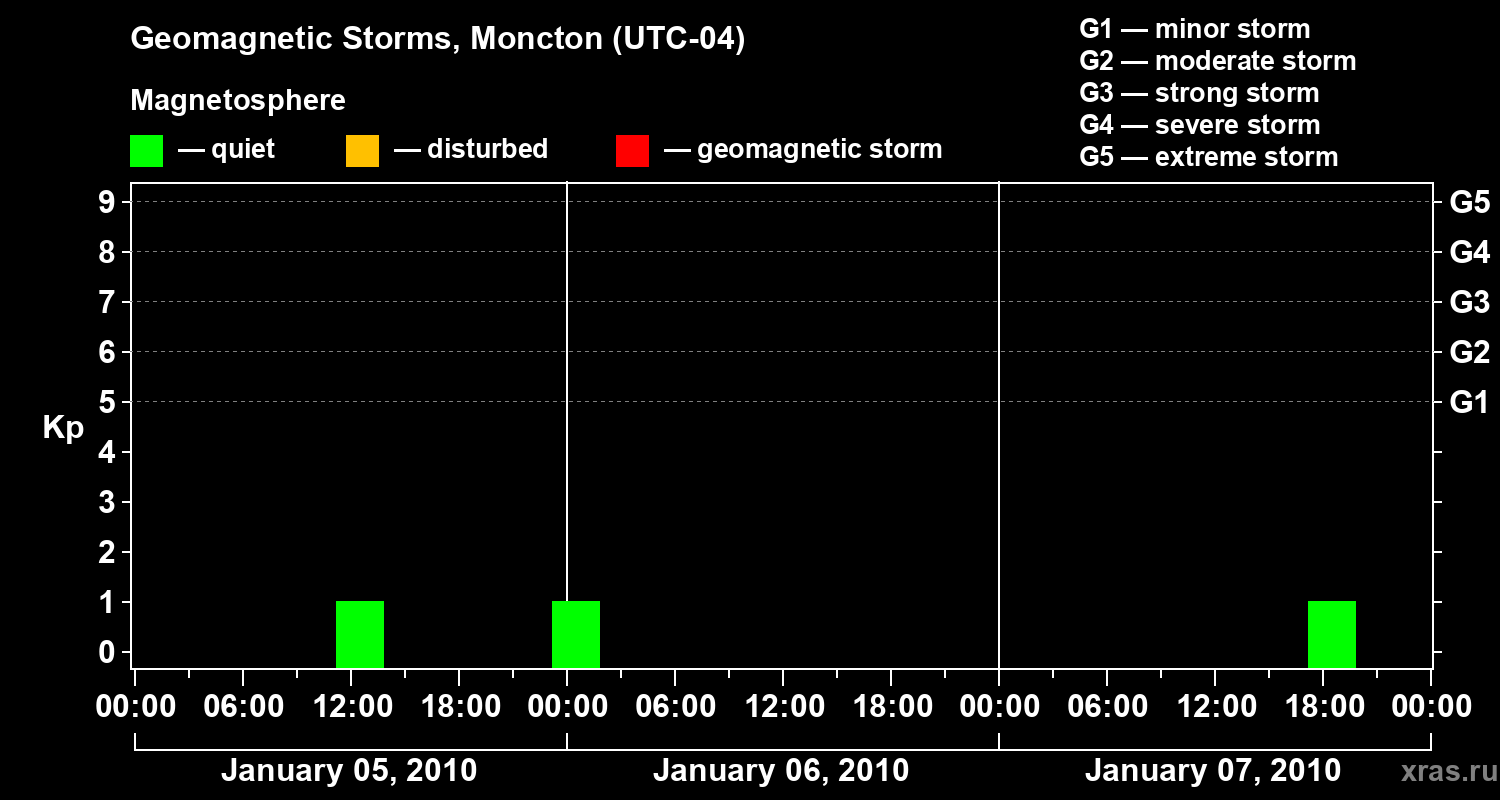 Geomagnetic storms in Moncton on Jan 07, 2010