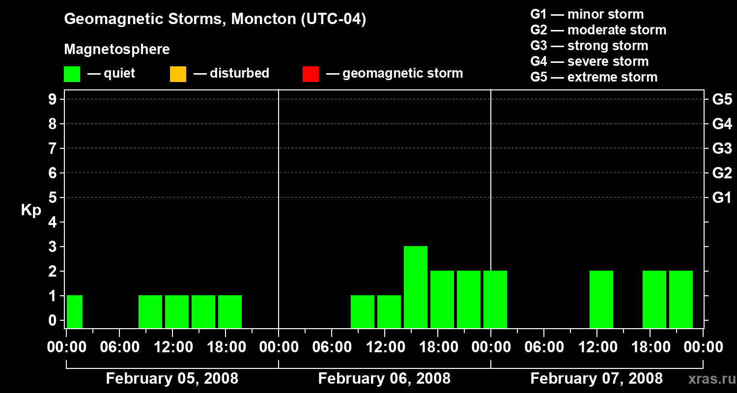 Geomagnetic storms in Moncton — Feb 07, 2008