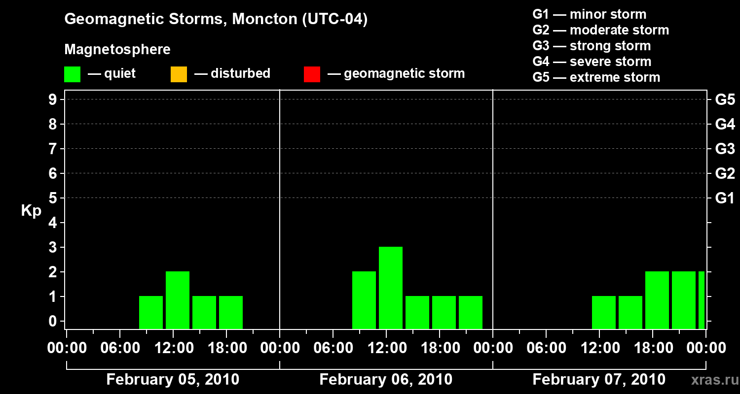 Geomagnetic storms in Moncton — Feb 07, 2010