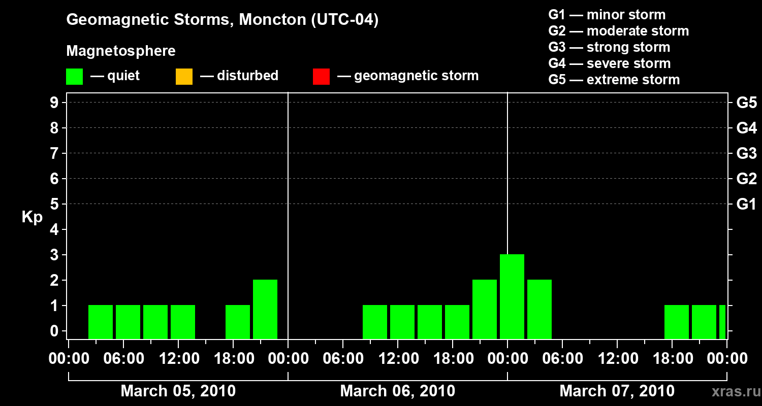 Geomagnetic storms in Moncton in March 2010
