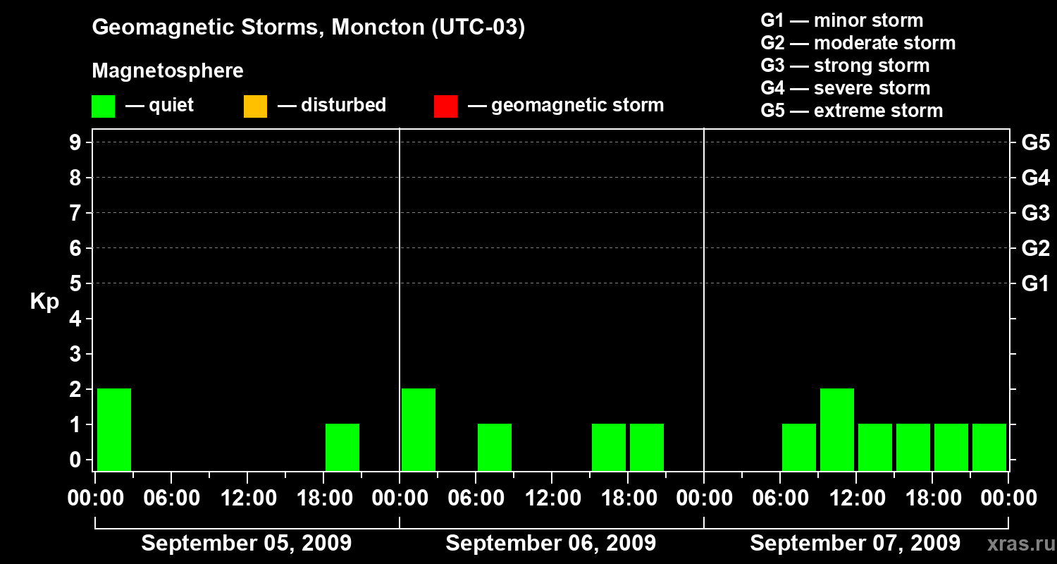 Geomagnetic storms in Moncton — Sep 07, 2009