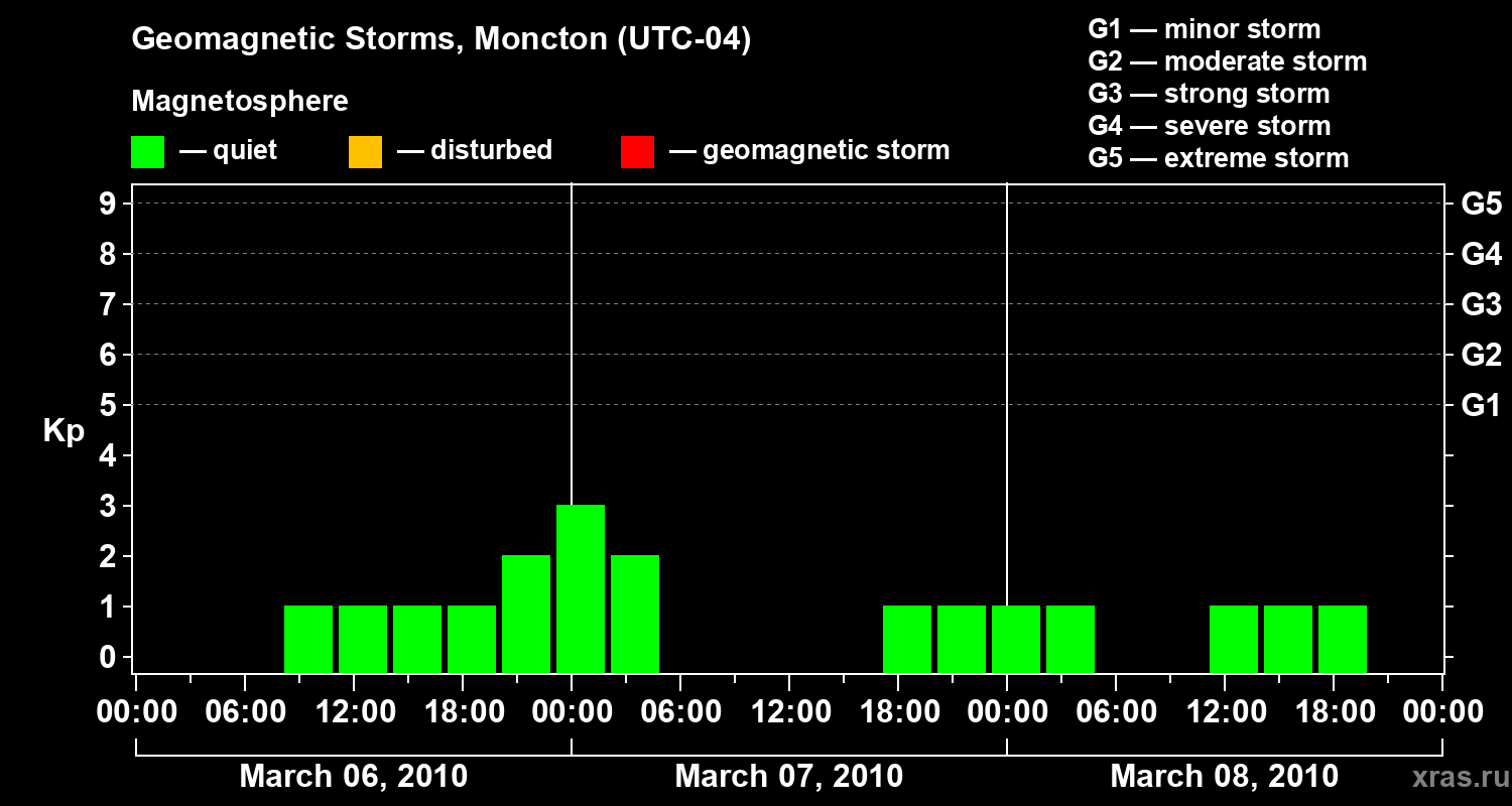 Geomagnetic storms in Moncton — Mar 08, 2010
