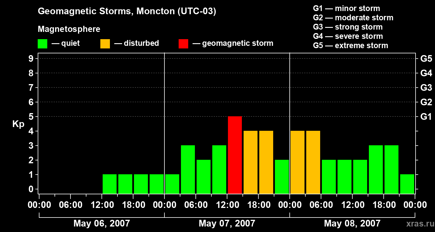 Geomagnetic storms in Moncton — May 08, 2007