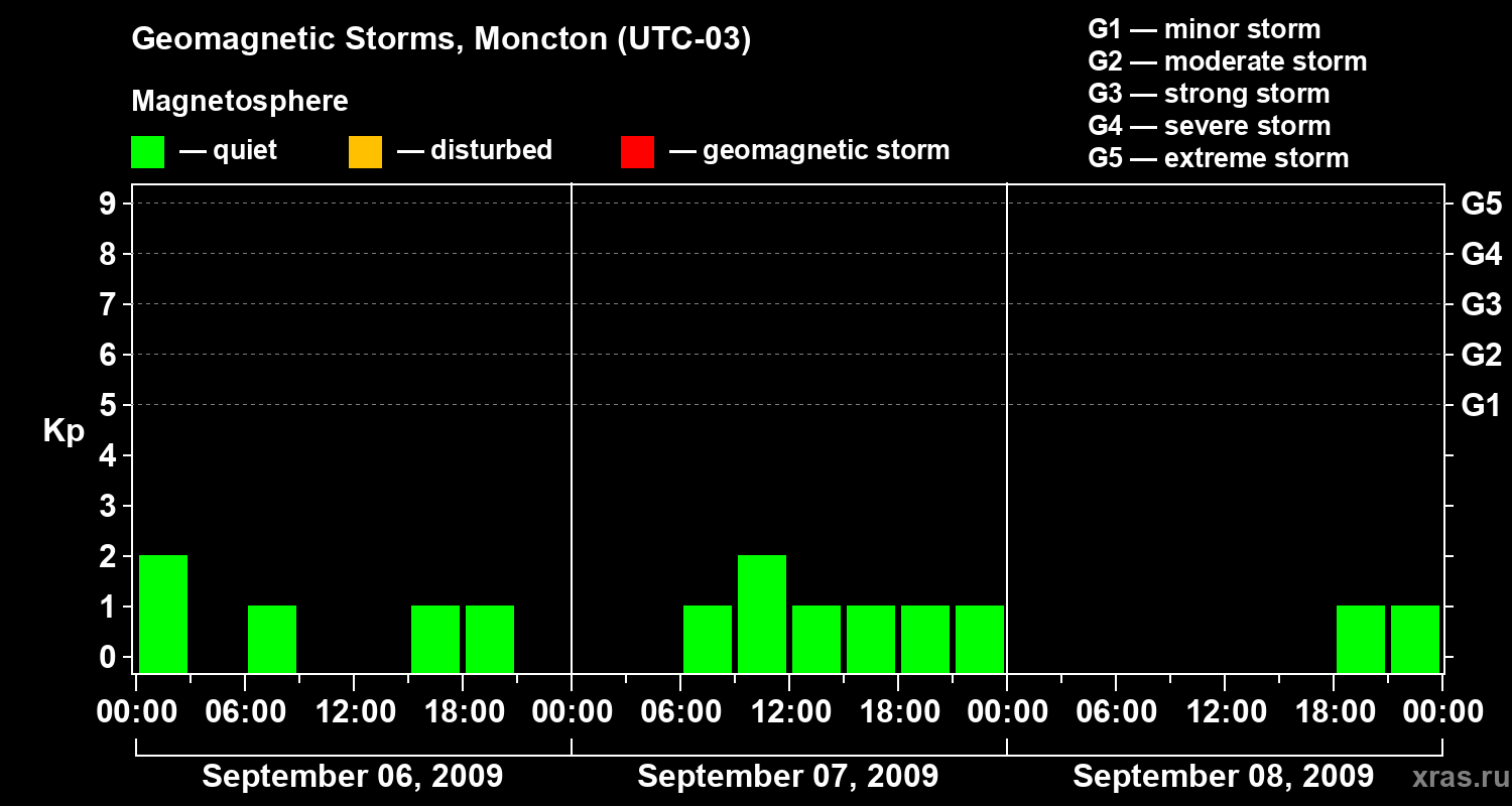 Geomagnetic storms in Moncton — Sep 08, 2009