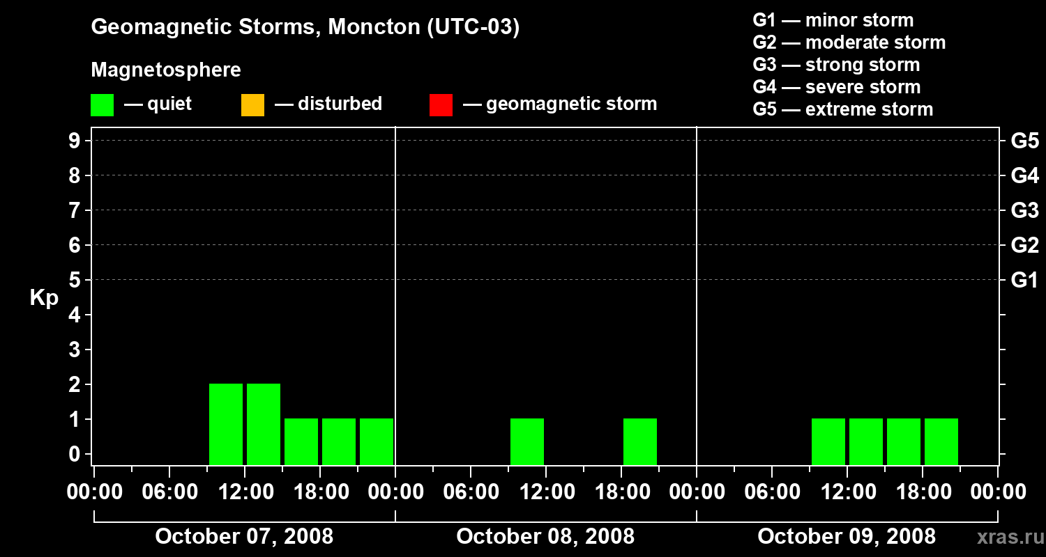 Geomagnetic storms in Moncton — Oct 09, 2008