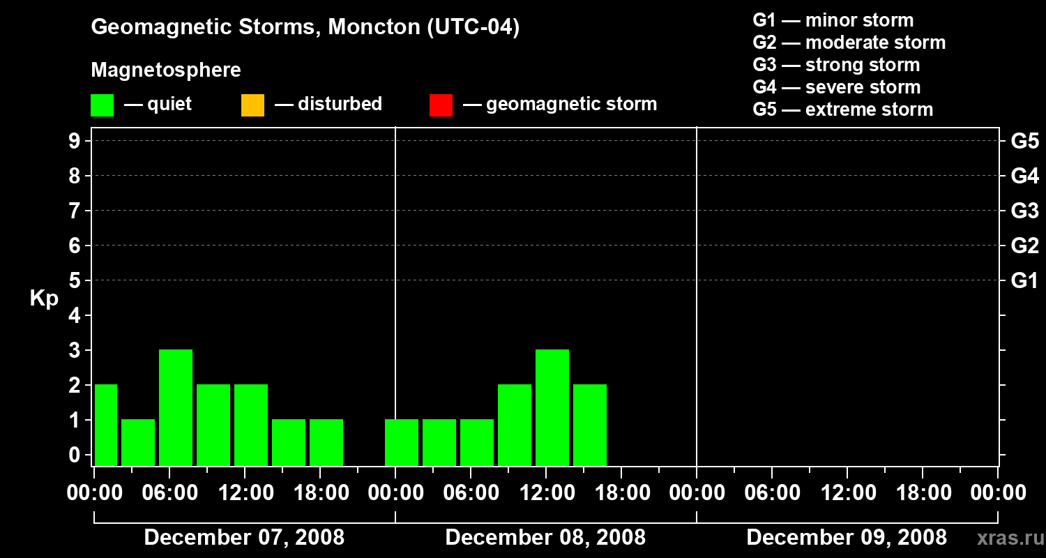 Geomagnetic storms in Moncton — Dec 09, 2008