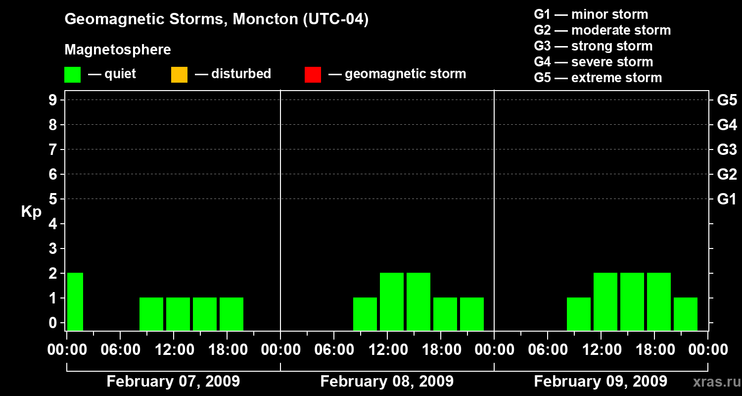 Geomagnetic storms in Moncton — Feb 09, 2009