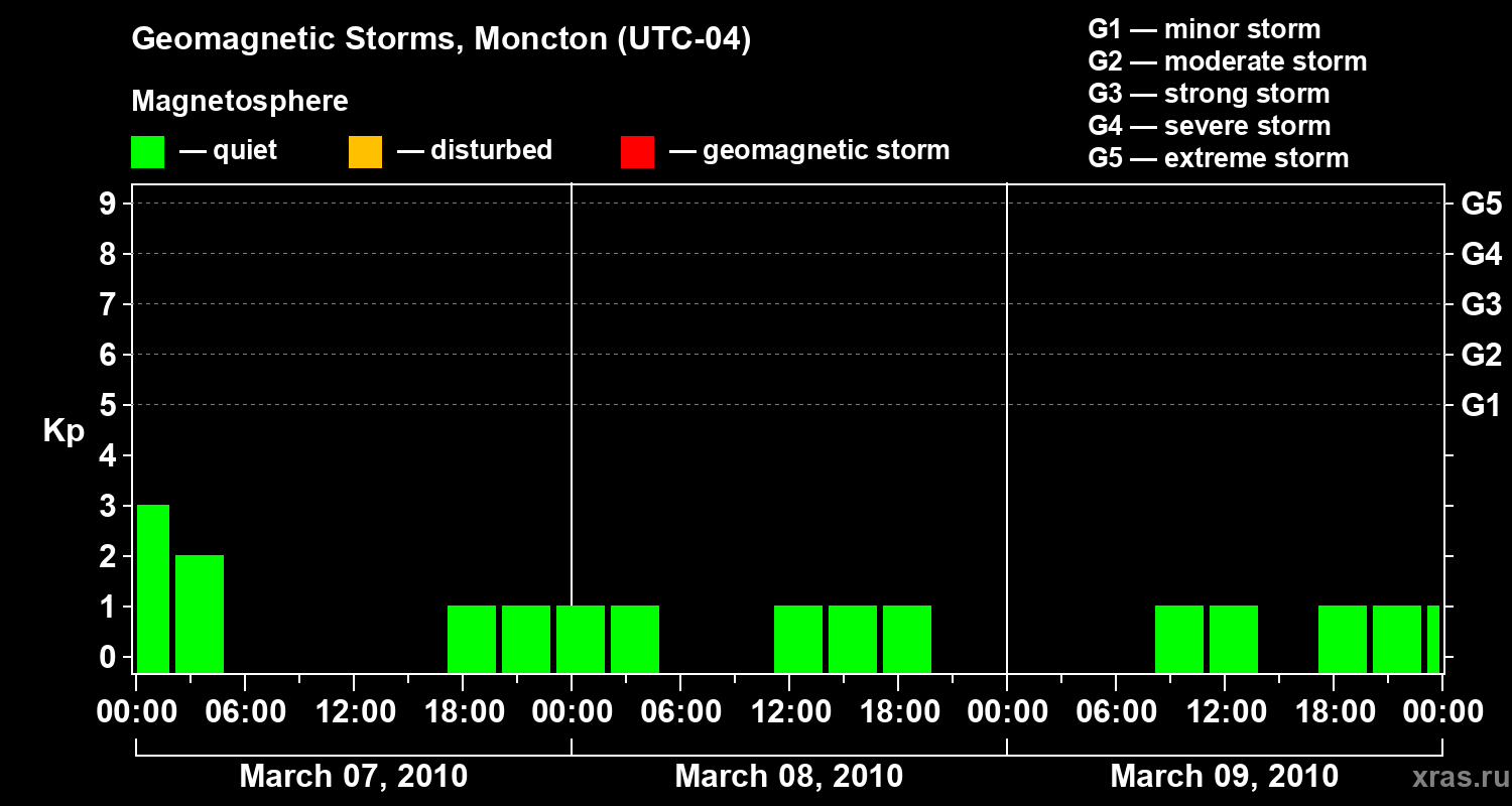 Geomagnetic storms in Moncton on Mar 09, 2010
