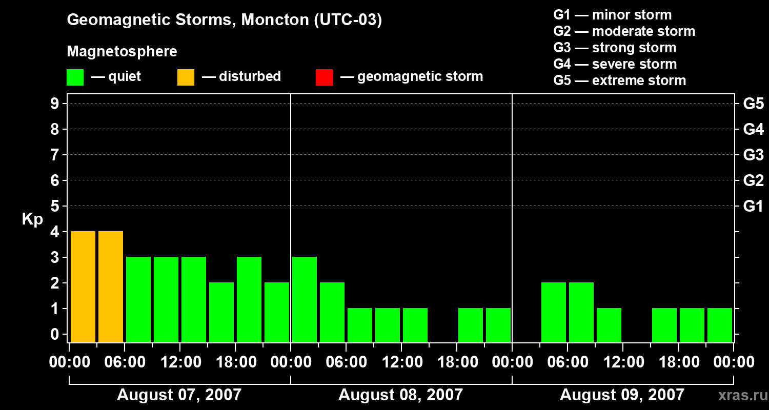 Geomagnetic storms in Moncton — Aug 09, 2007