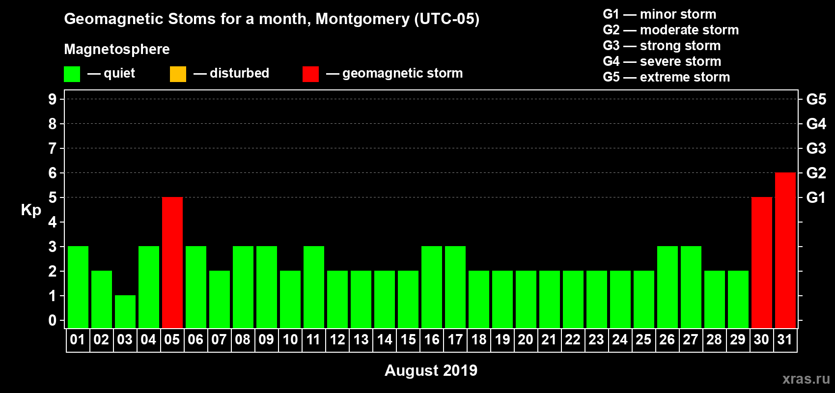 Geomagnetic storms in Montgomery — Aug 31, 2019