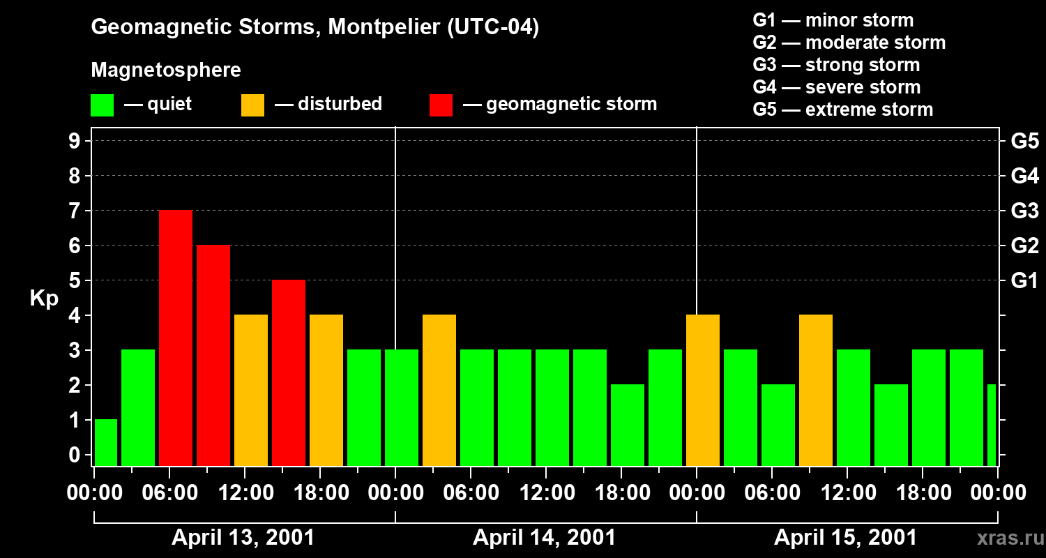 Geomagnetic storms in Montpelier in April 2001