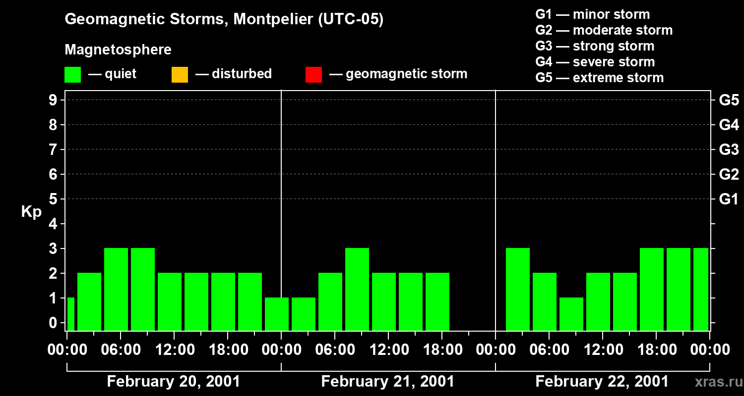 Geomagnetic storms in Montpelier on Feb 22, 2001