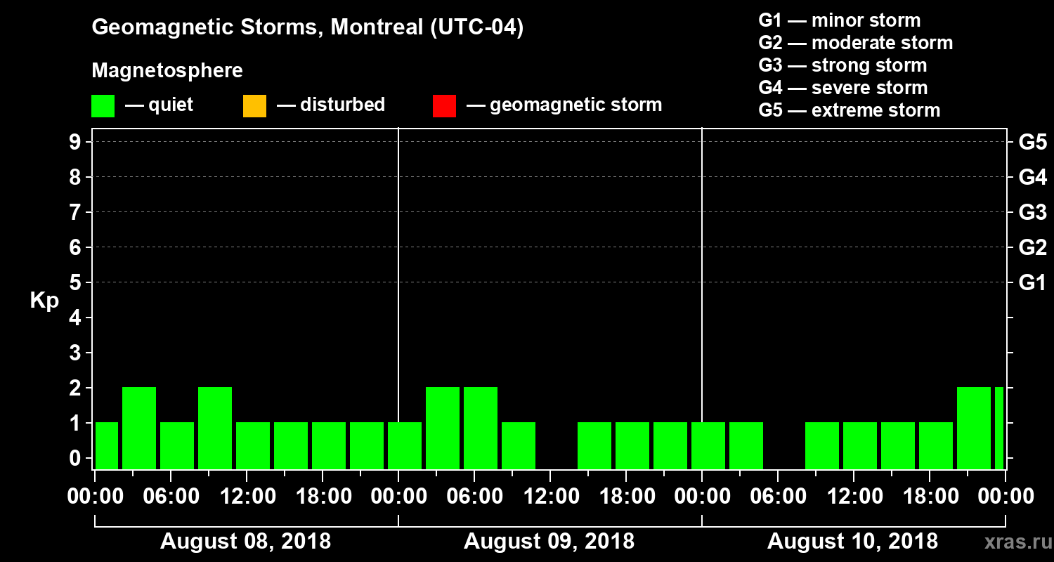 Geomagnetic storms in Montreal — Aug 10, 2018