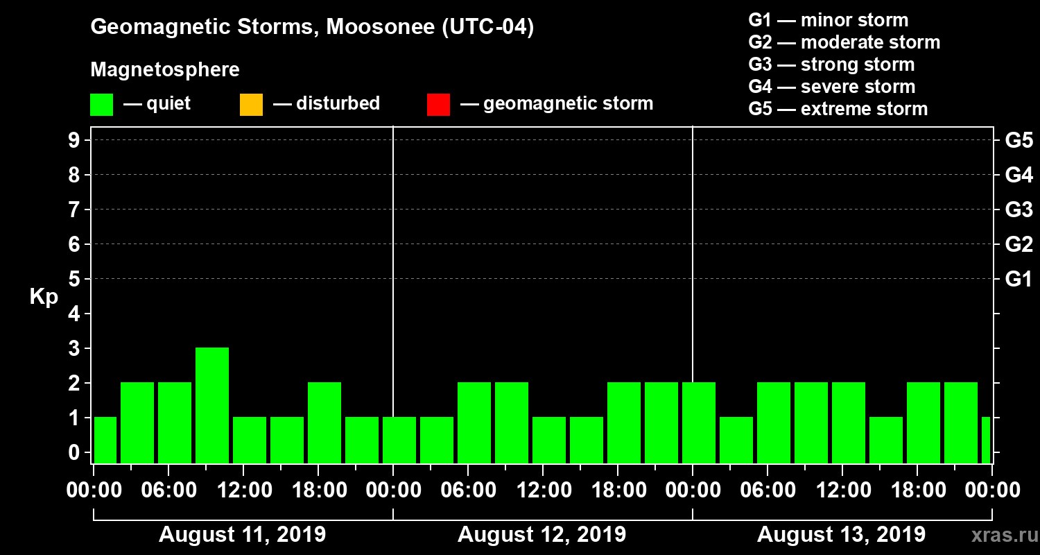 Geomagnetic storms in Moosonee — Aug 13, 2019