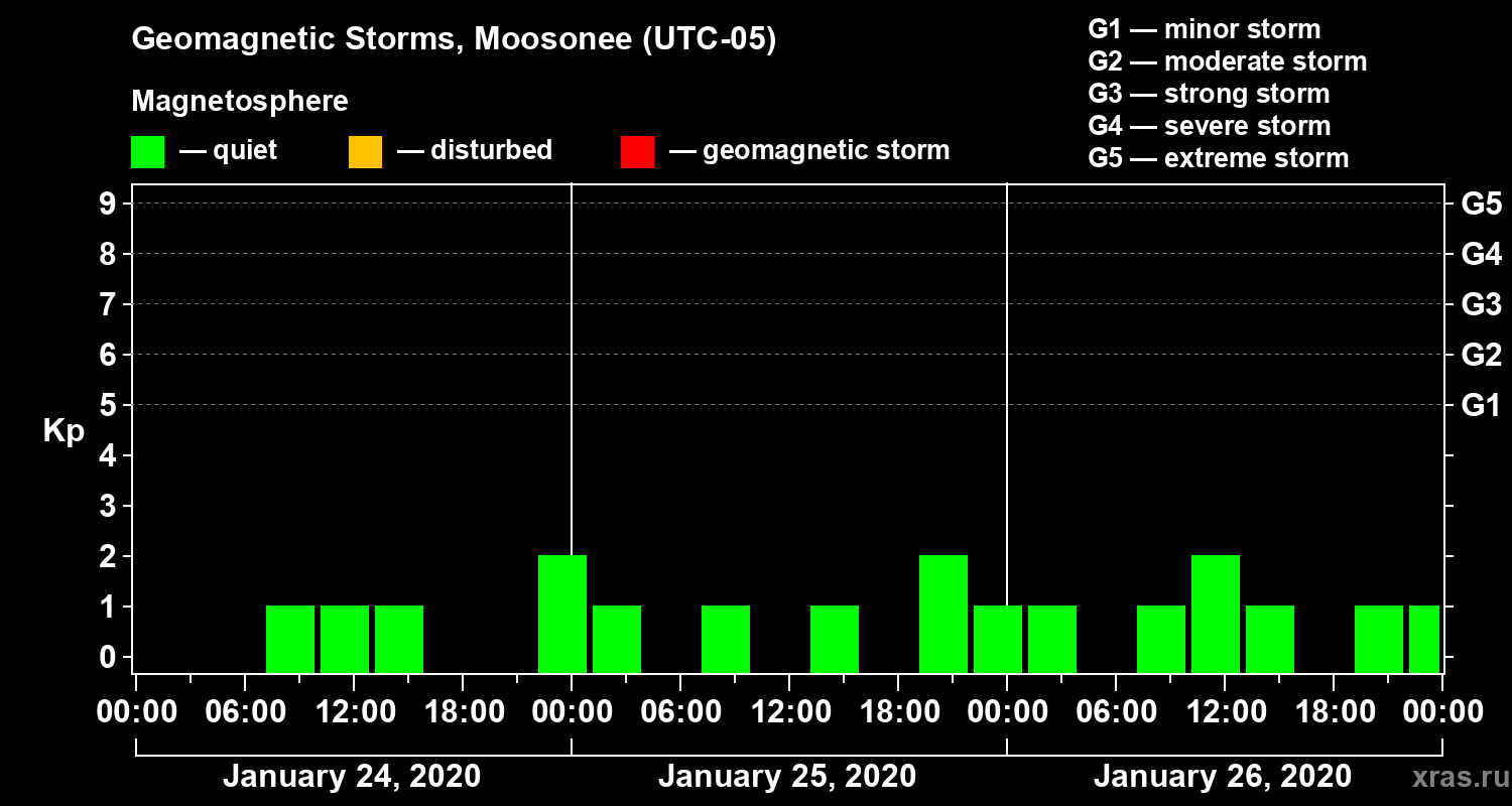 Geomagnetic storms in Moosonee — Jan 26, 2020