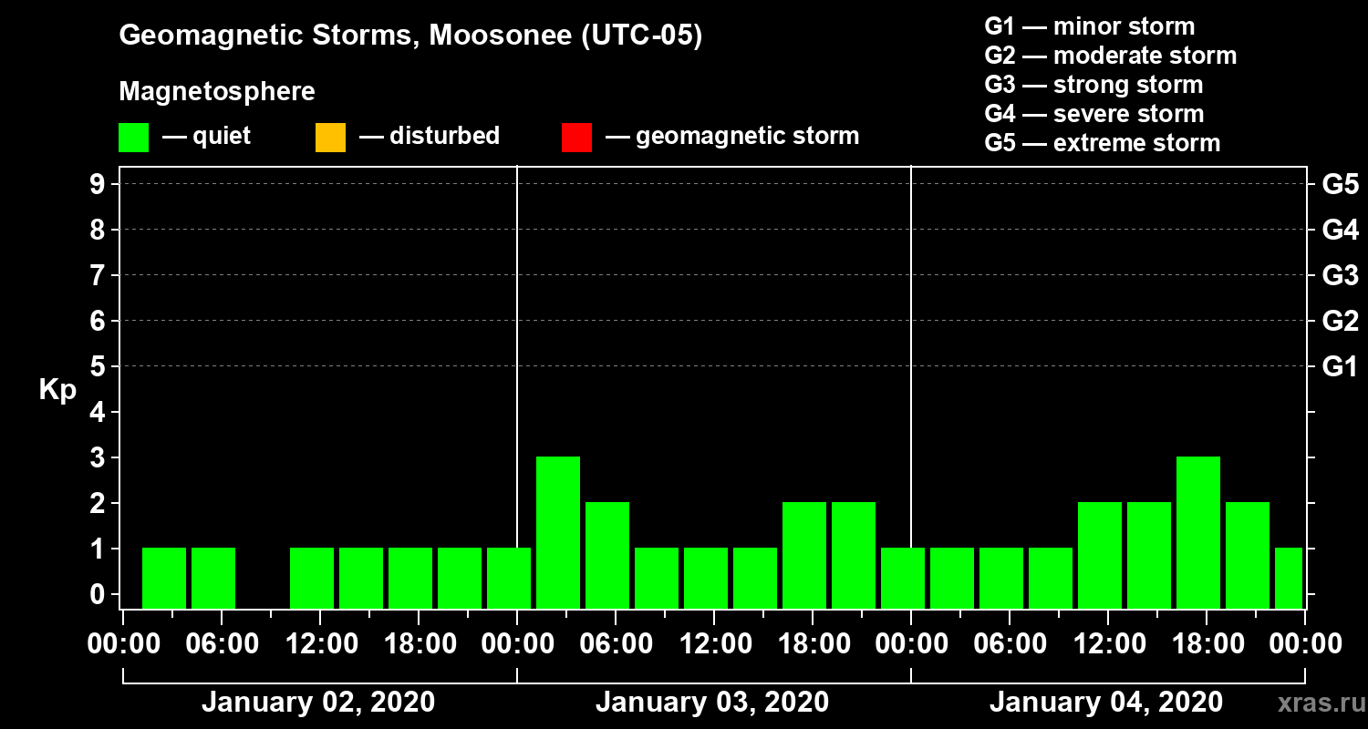 Geomagnetic storms in Moosonee — Jan 04, 2020