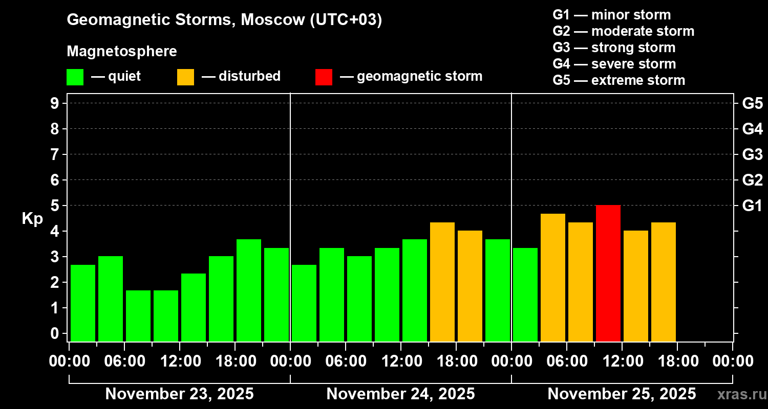 Geomagnetic storms in Moscow on Nov 25, 2025