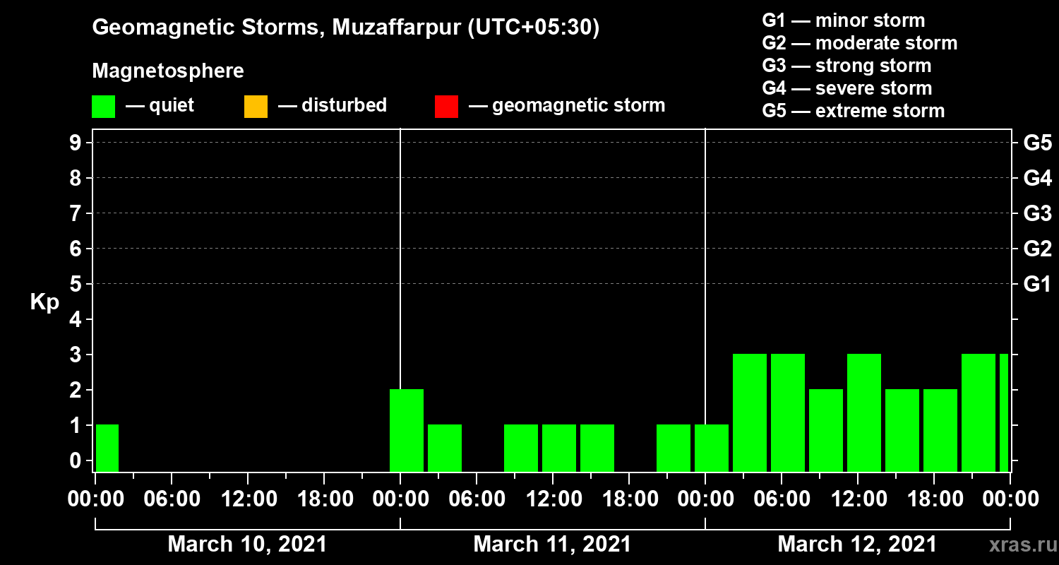 Geomagnetic storms in Muzaffarpur — Mar 12, 2021
