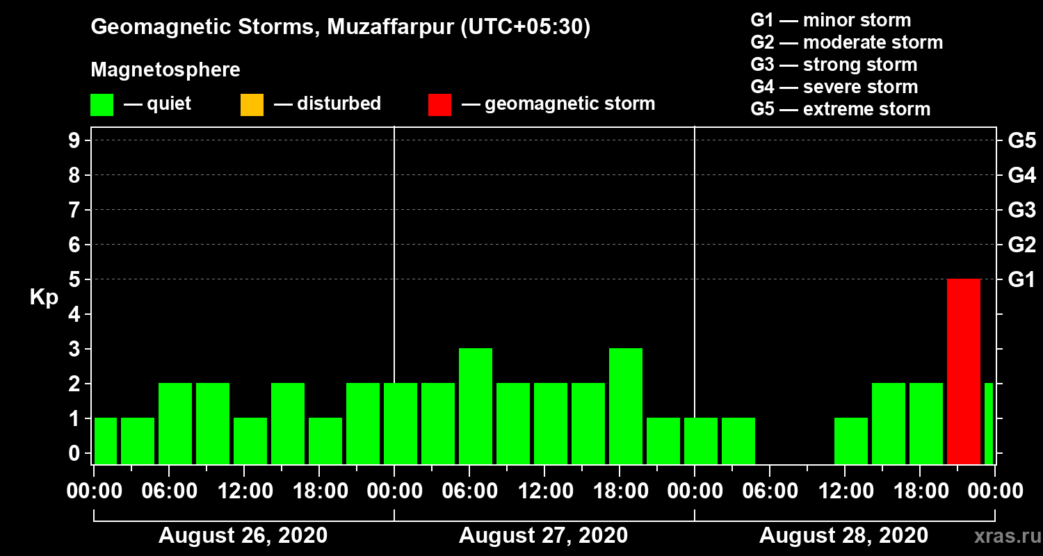 Geomagnetic storms in Muzaffarpur — Aug 28, 2020