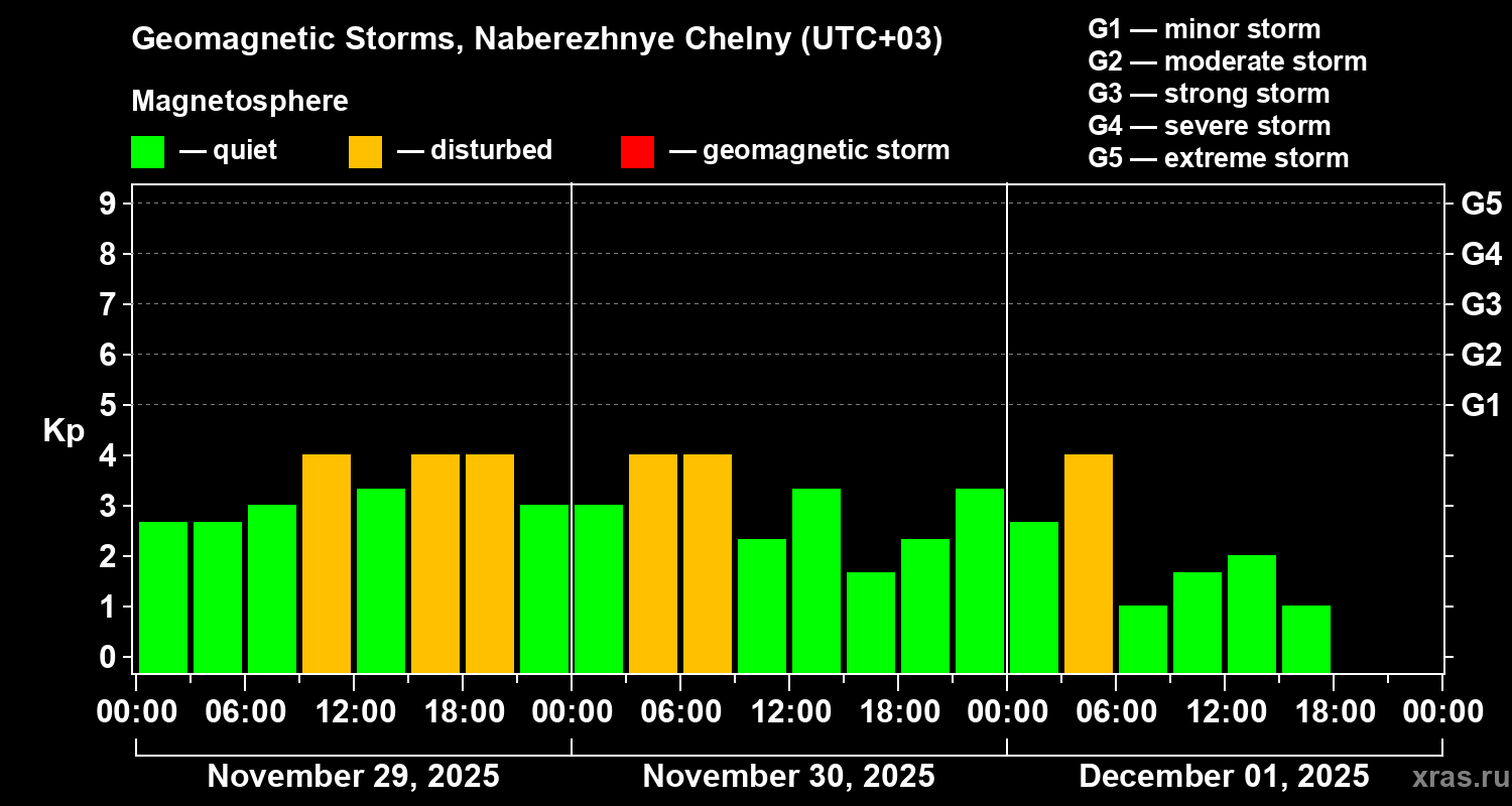 Geomagnetic storms in Naberezhnye Chelny — Dec 01, 2025