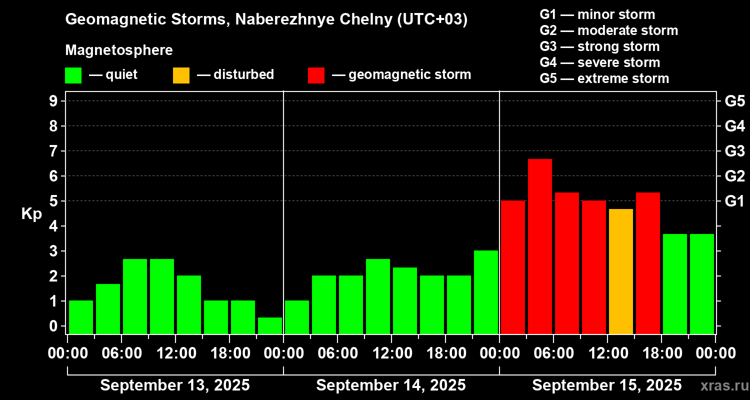 Geomagnetic storms in Naberezhnye Chelny — Sep 15, 2025