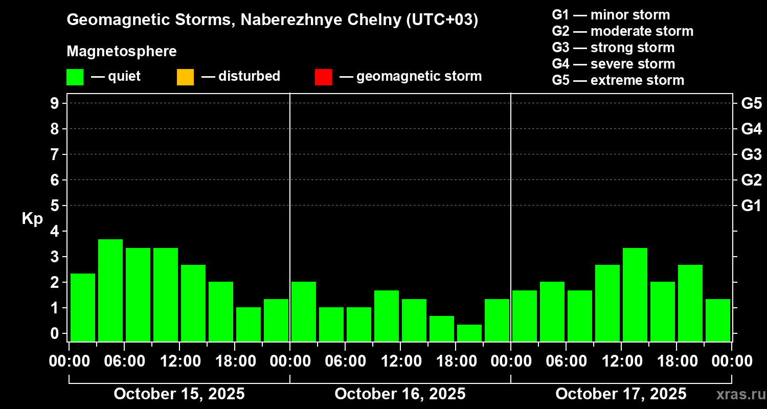 Geomagnetic storms in Naberezhnye Chelny — Oct 17, 2025