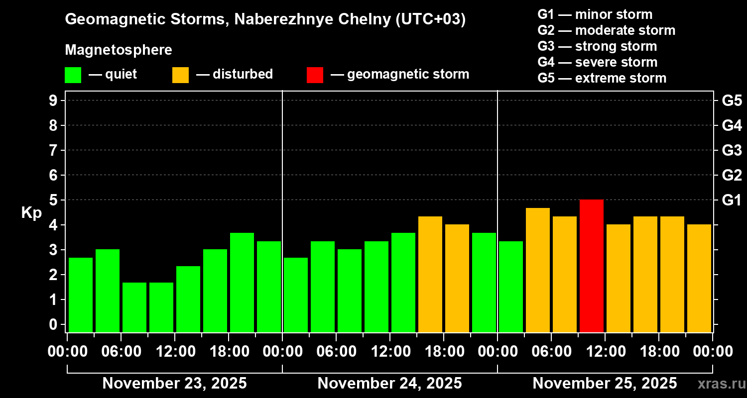 Geomagnetic storms in Naberezhnye Chelny — Nov 25, 2025