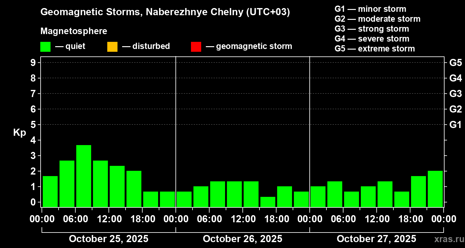 Geomagnetic storms in Naberezhnye Chelny on Oct 27, 2025