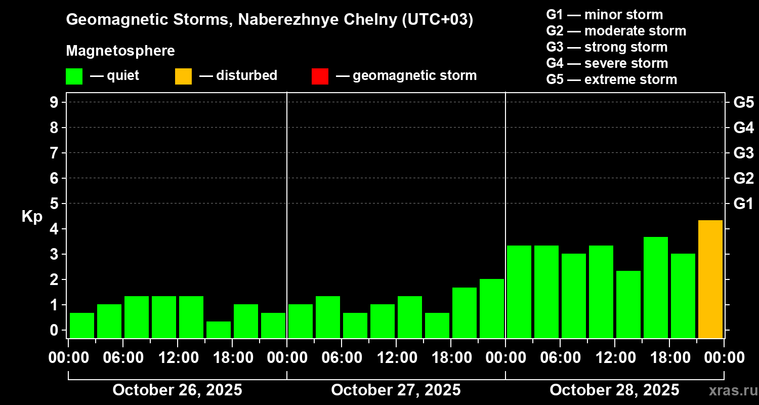 Geomagnetic storms in Naberezhnye Chelny — Oct 28, 2025