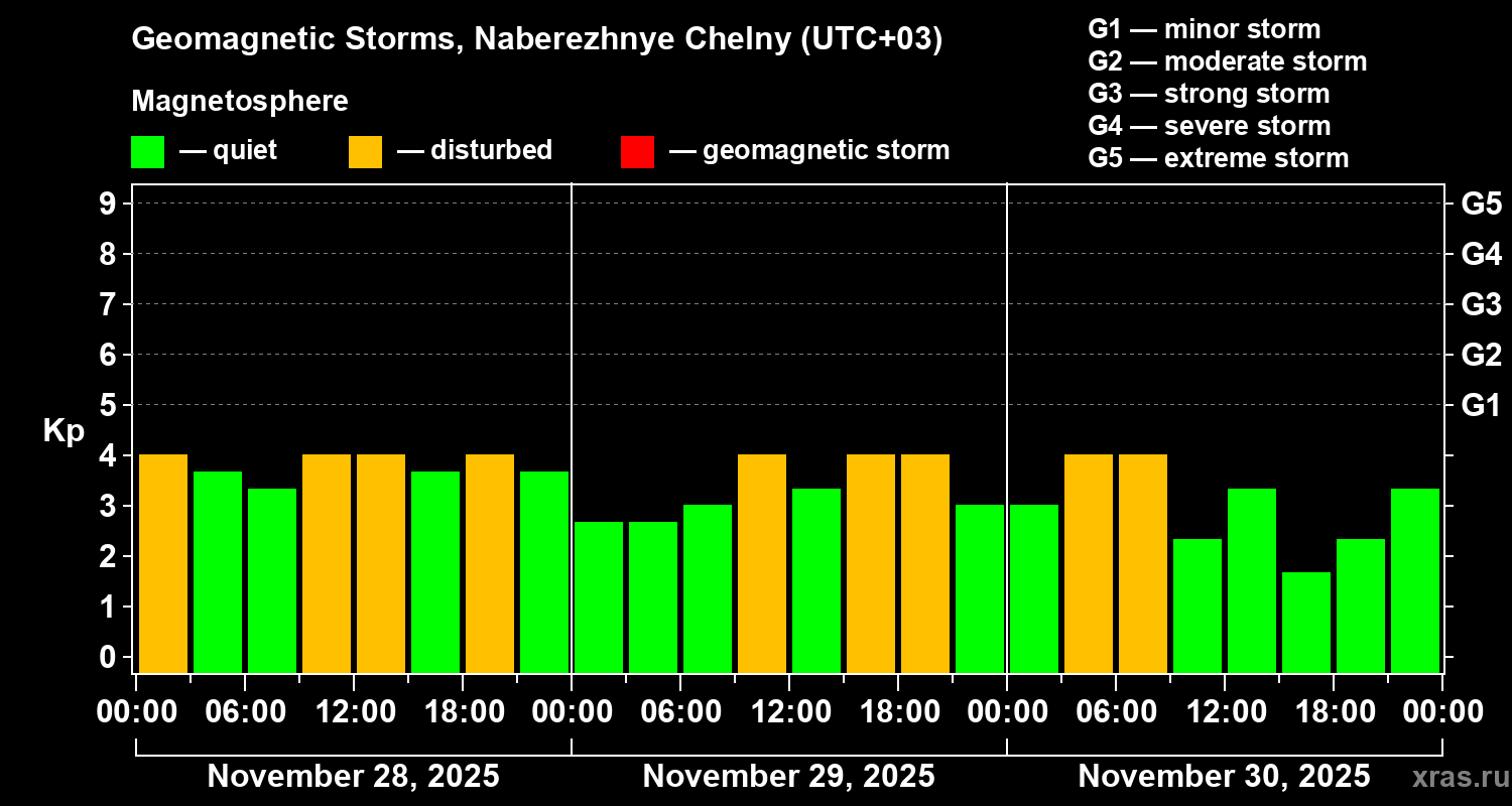 Geomagnetic storms in Naberezhnye Chelny — Nov 30, 2025
