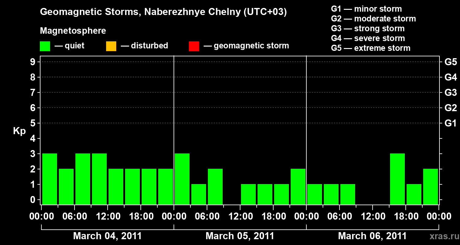 Geomagnetic storms in Naberezhnye Chelny in March 2011