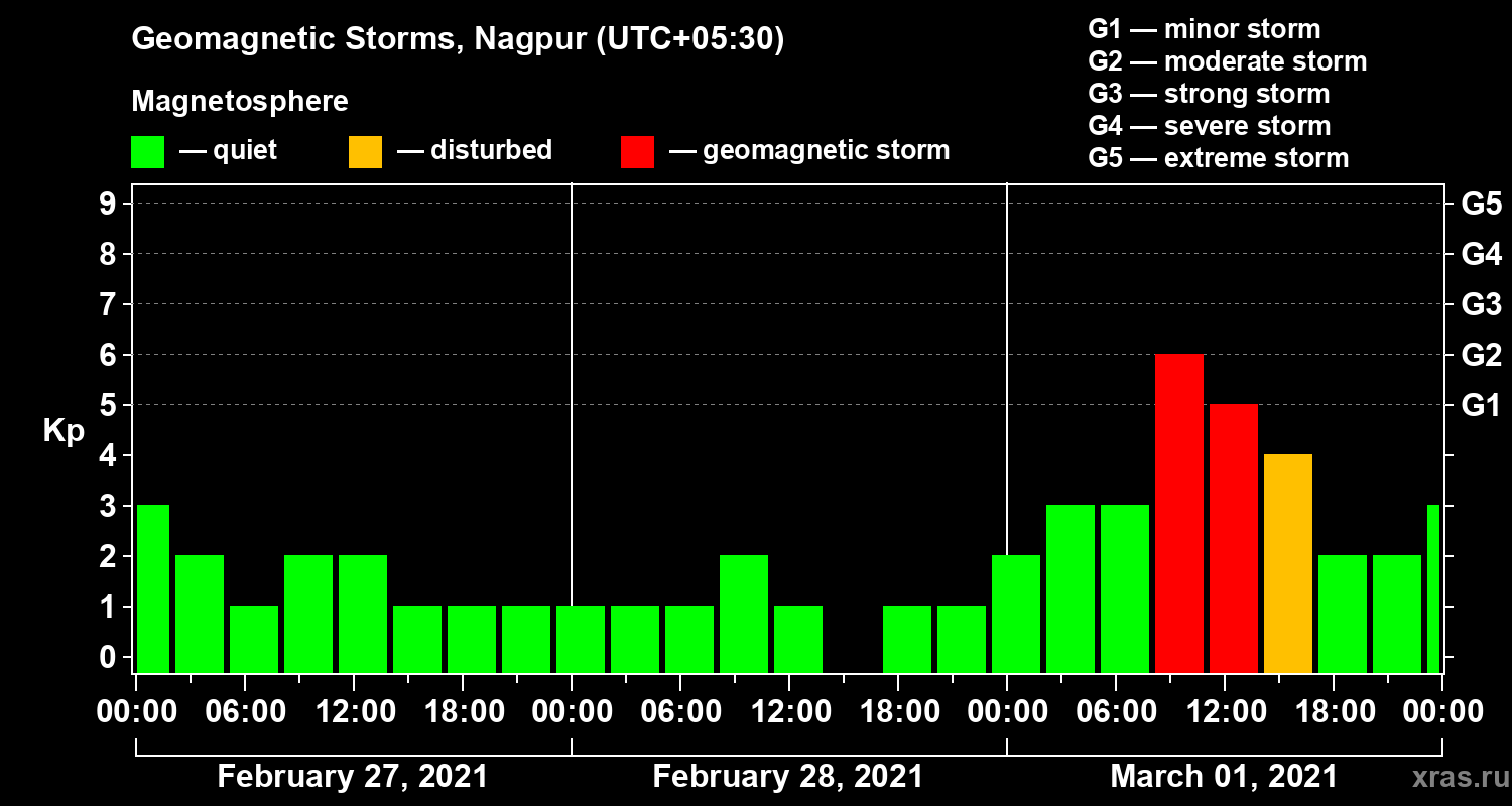 Geomagnetic storms in Nagpur — Mar 01, 2021