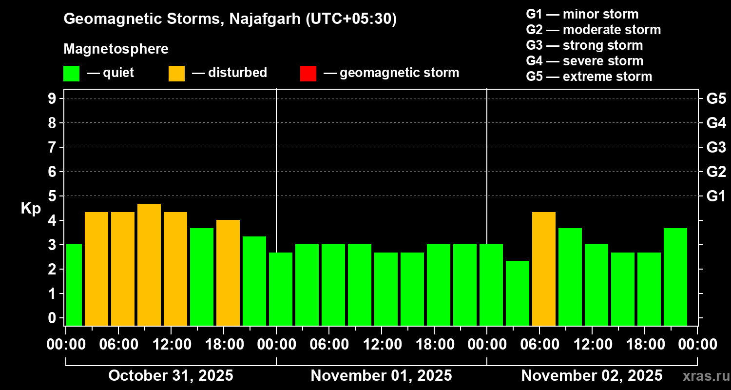 Geomagnetic storms in Najafgarh — Nov 02, 2025