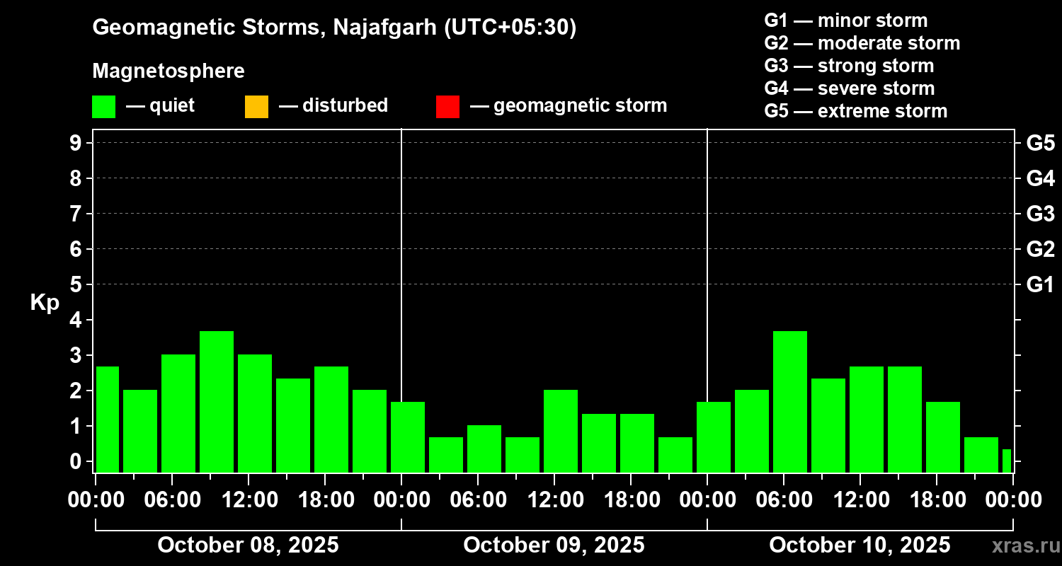 Geomagnetic storms in Najafgarh — Oct 10, 2025