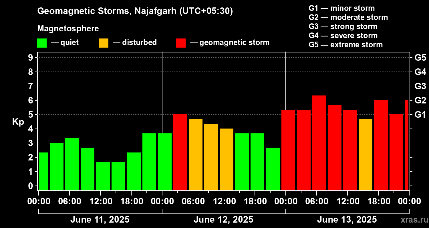Geomagnetic storms in Najafgarh — Jun 13, 2025