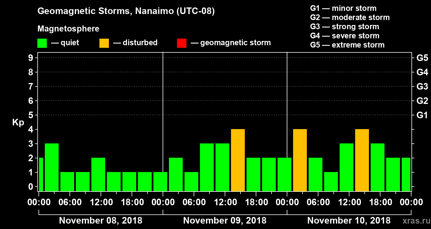 Geomagnetic storms in Nanaimo on Nov 10, 2018
