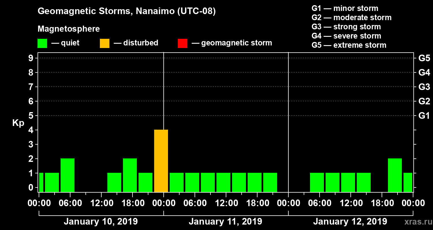 Geomagnetic storms in Nanaimo on Jan 12, 2019