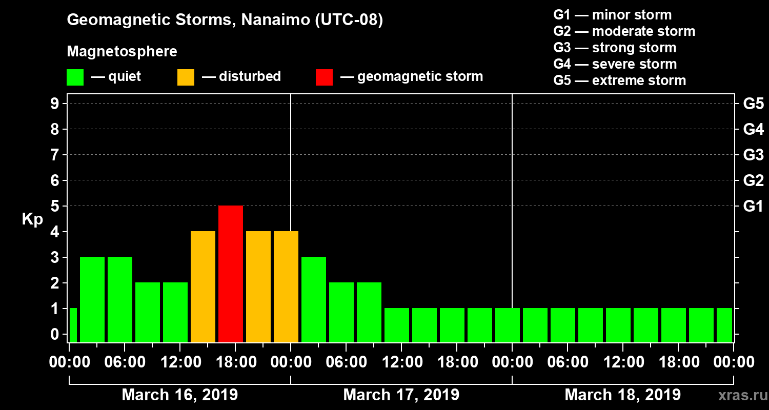 Geomagnetic storms in Nanaimo in March 2019