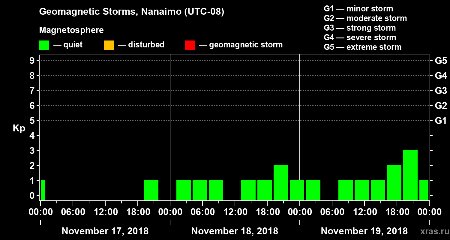 Geomagnetic storms in Nanaimo on Nov 19, 2018