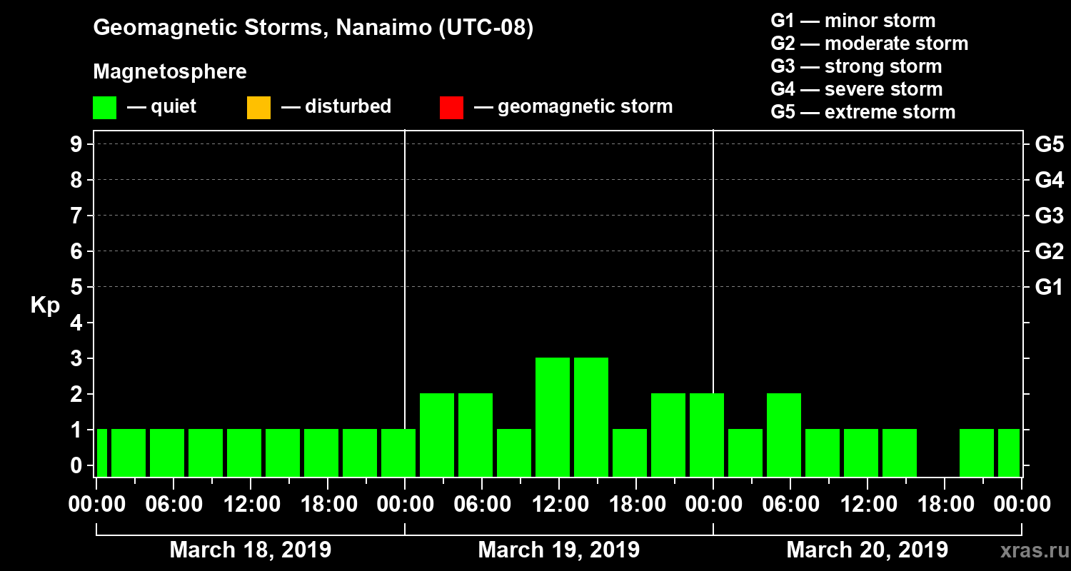 Geomagnetic storms in Nanaimo on Mar 20, 2019